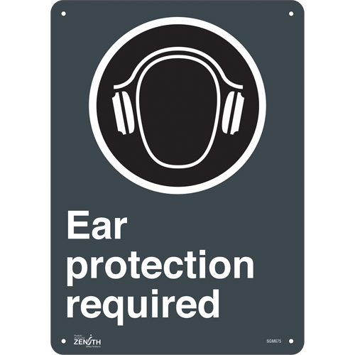 “Ear Protection Required” Sign, 14″ x 10″, Aluminum, English with Pictogram – SGM675